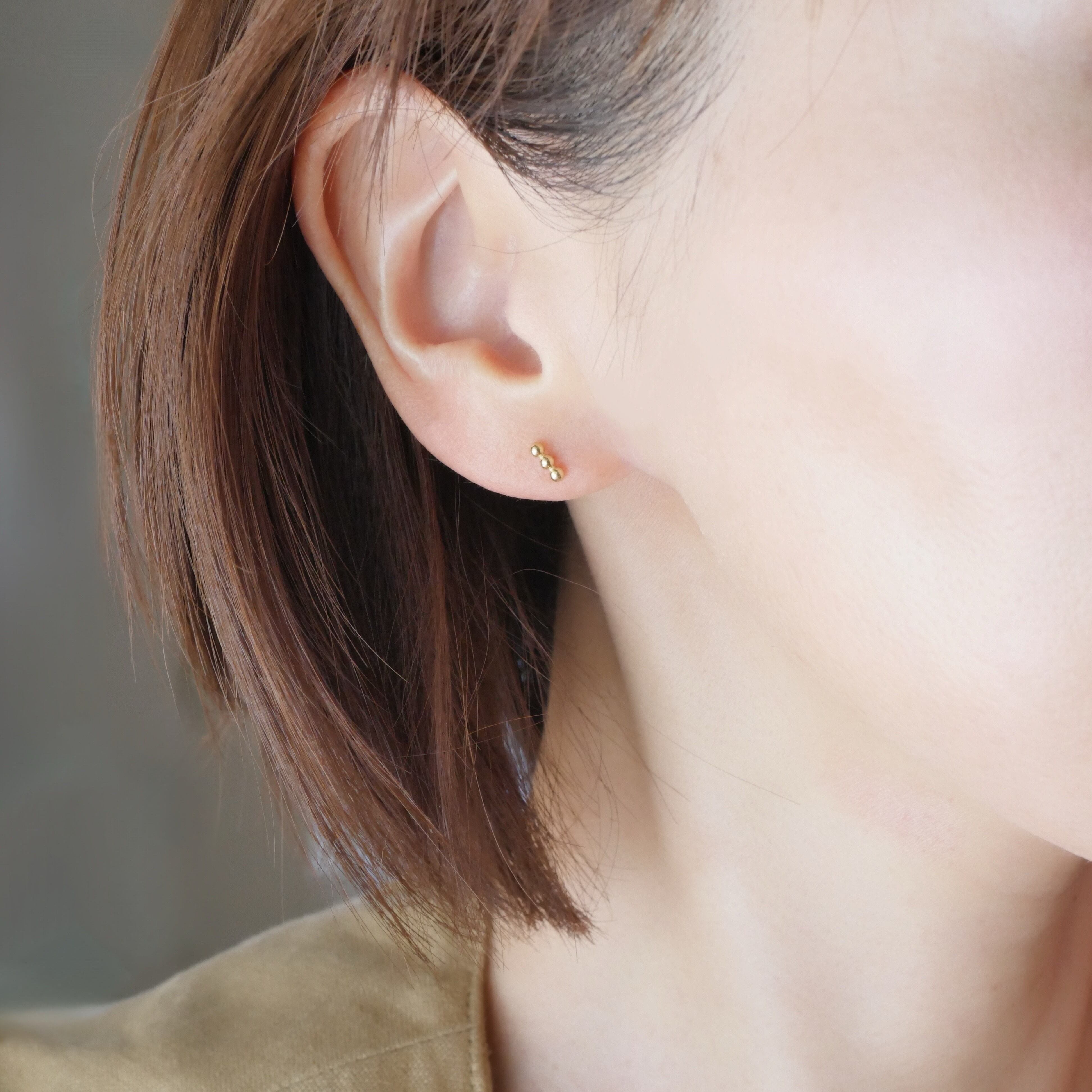 耳たぶにちょこんと並ぶ、極小サイズのゴールドボール。