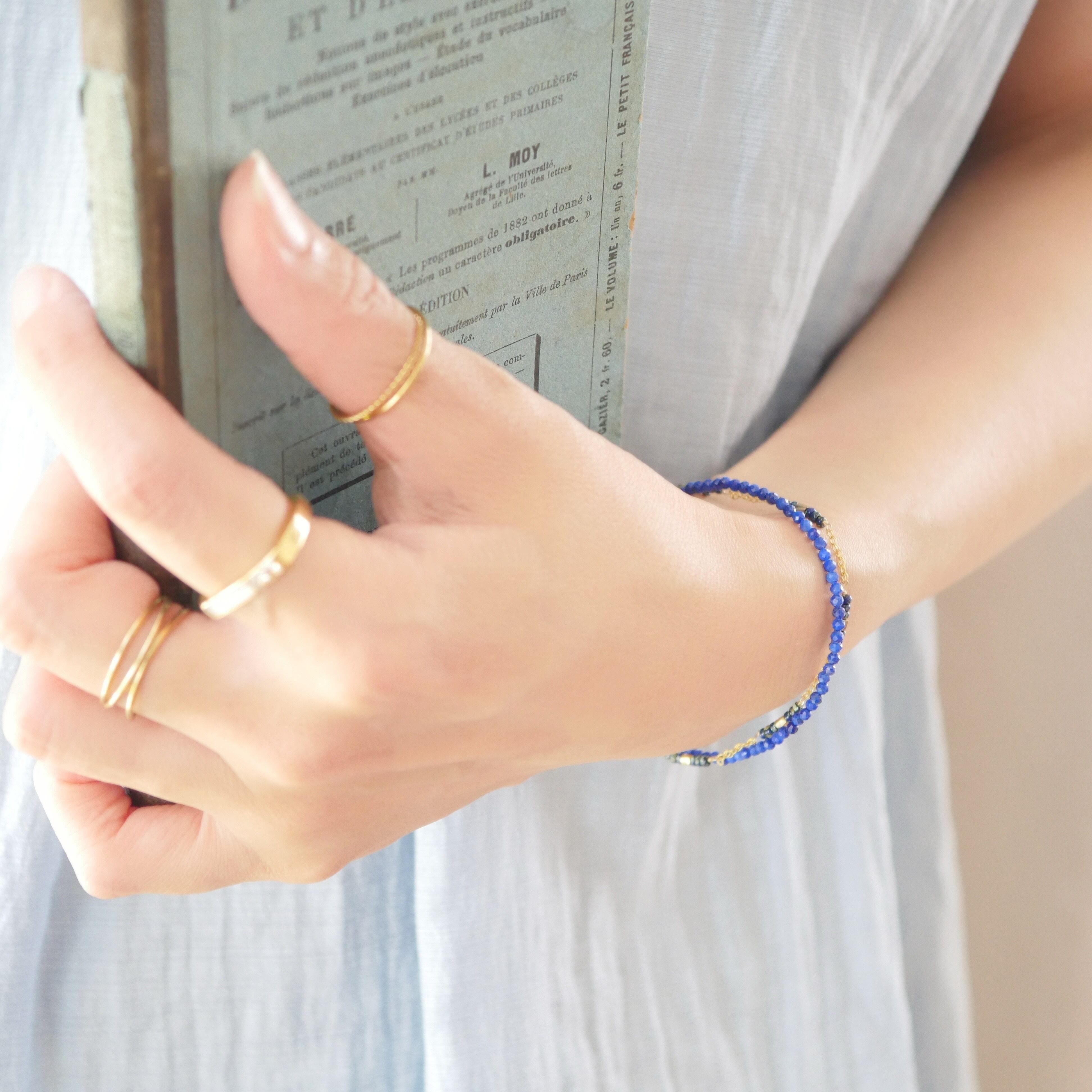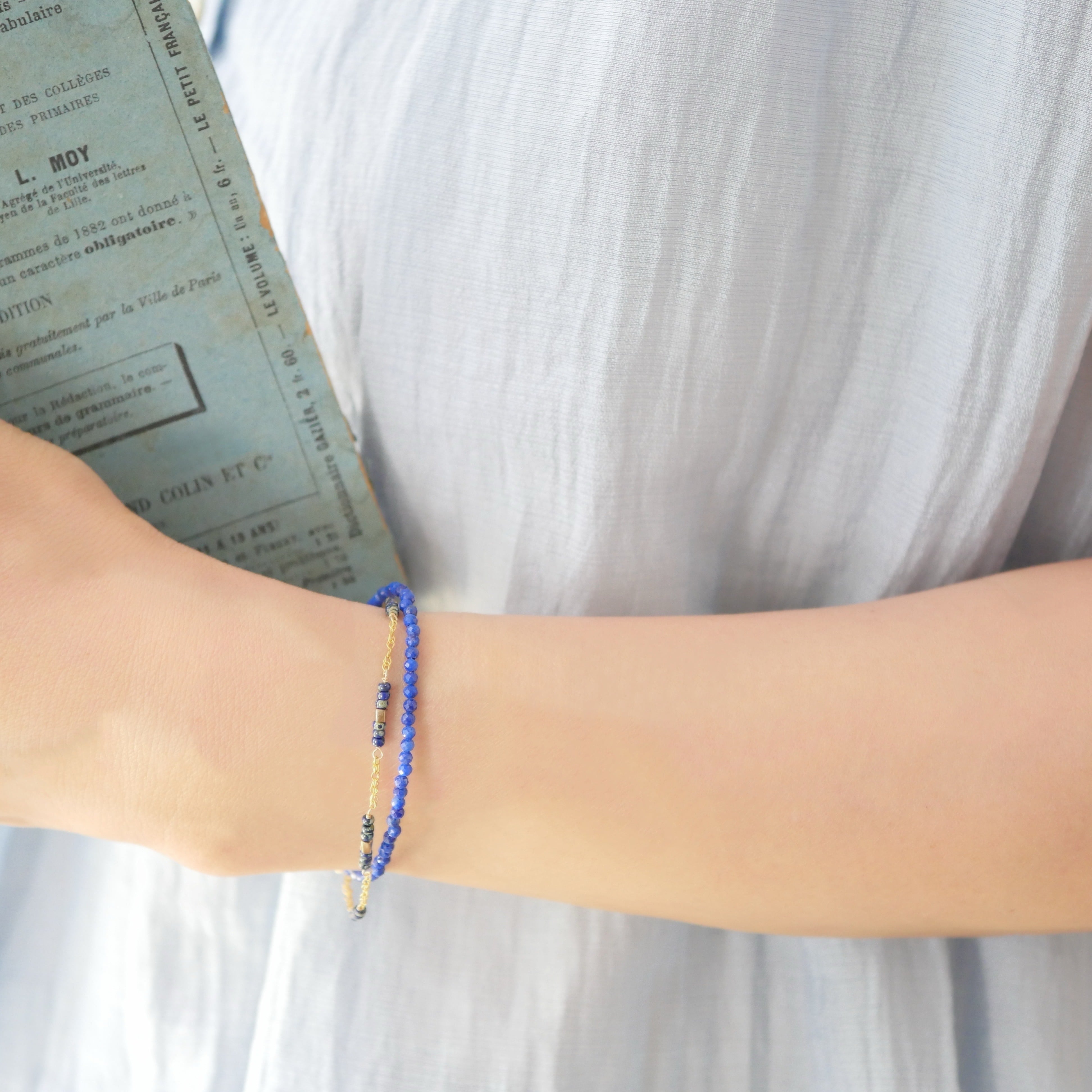 ラピスブレスレット 14kgf 金属アレルギー対応 夏アクセサリー レイヤード風 白Tに合う 涼しげアクセ つけ心地軽いブレスレット マグネットブレスレット 大人カジュアル