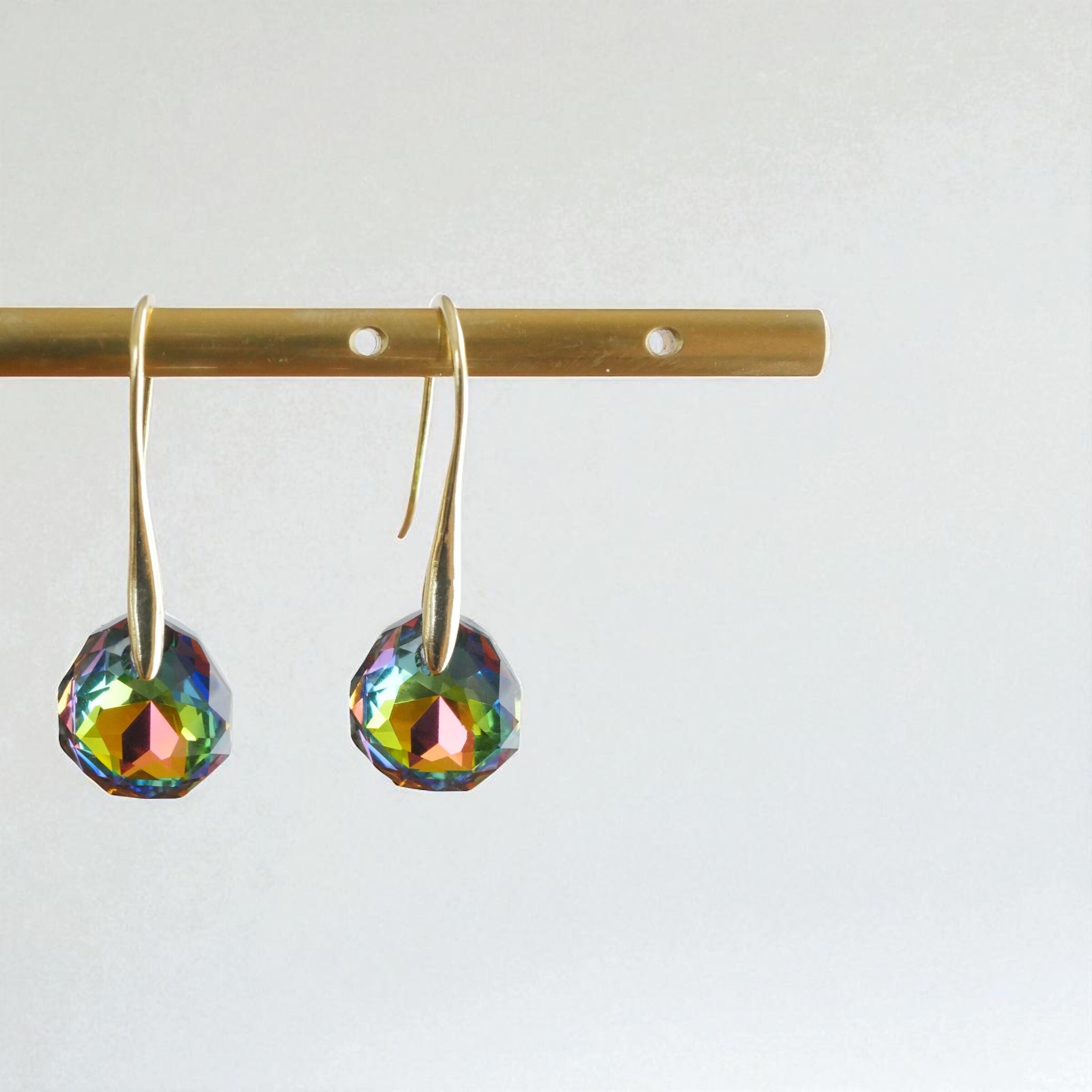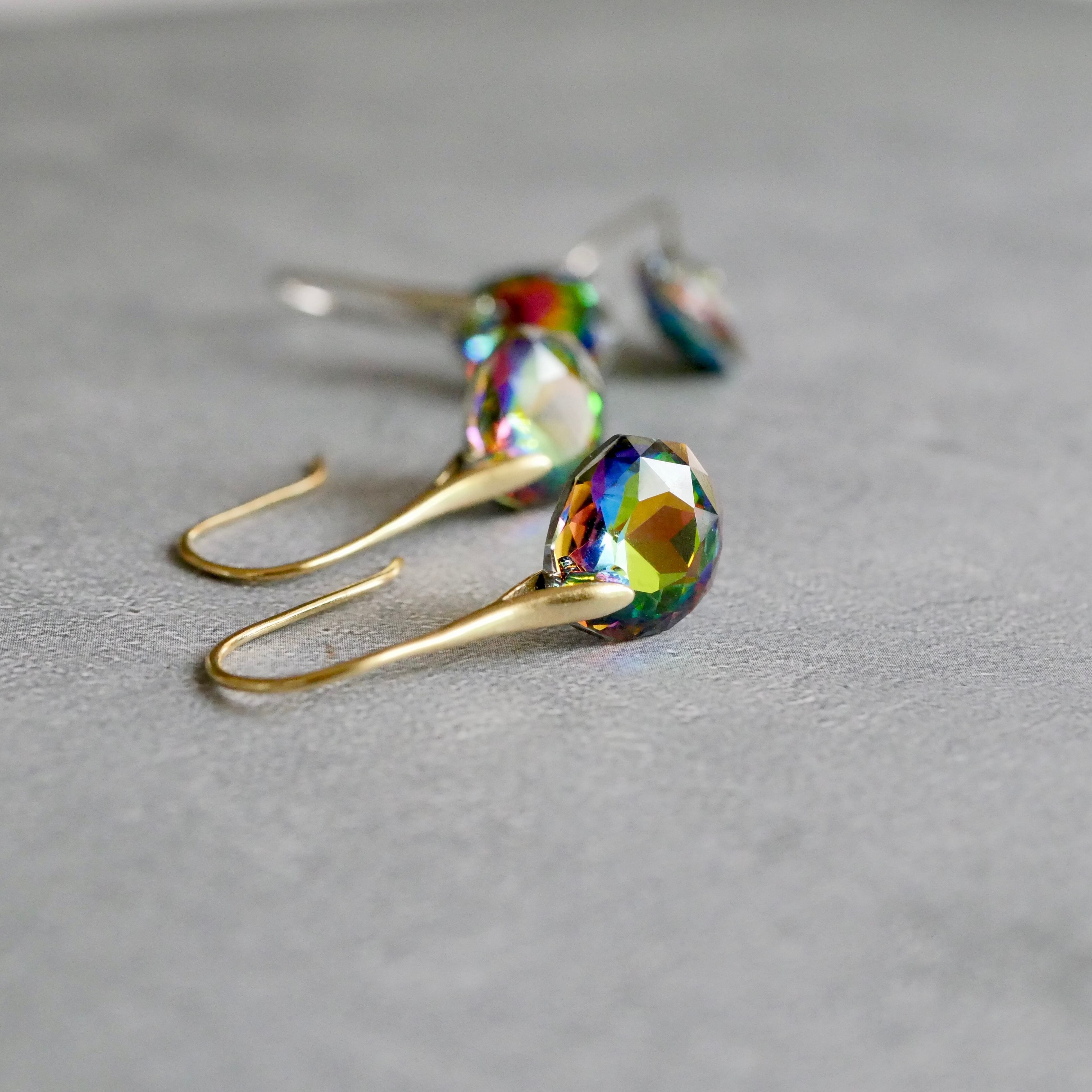 揺れるピアス 一粒ピアス クリスタルピアス 虹色ピアス ヴィトラルミディアム ミスティックトパーズ風 万華鏡ピアス カラフルピアス オーストリア産クリスタル 高品質ガラス ニッケルフリー 金属アレルギー対応 大人上品アクセサリー ギフト プレゼント 誕生日 記念日 入学式 卒業式 結婚式 二次会 お呼ばれアクセサリー