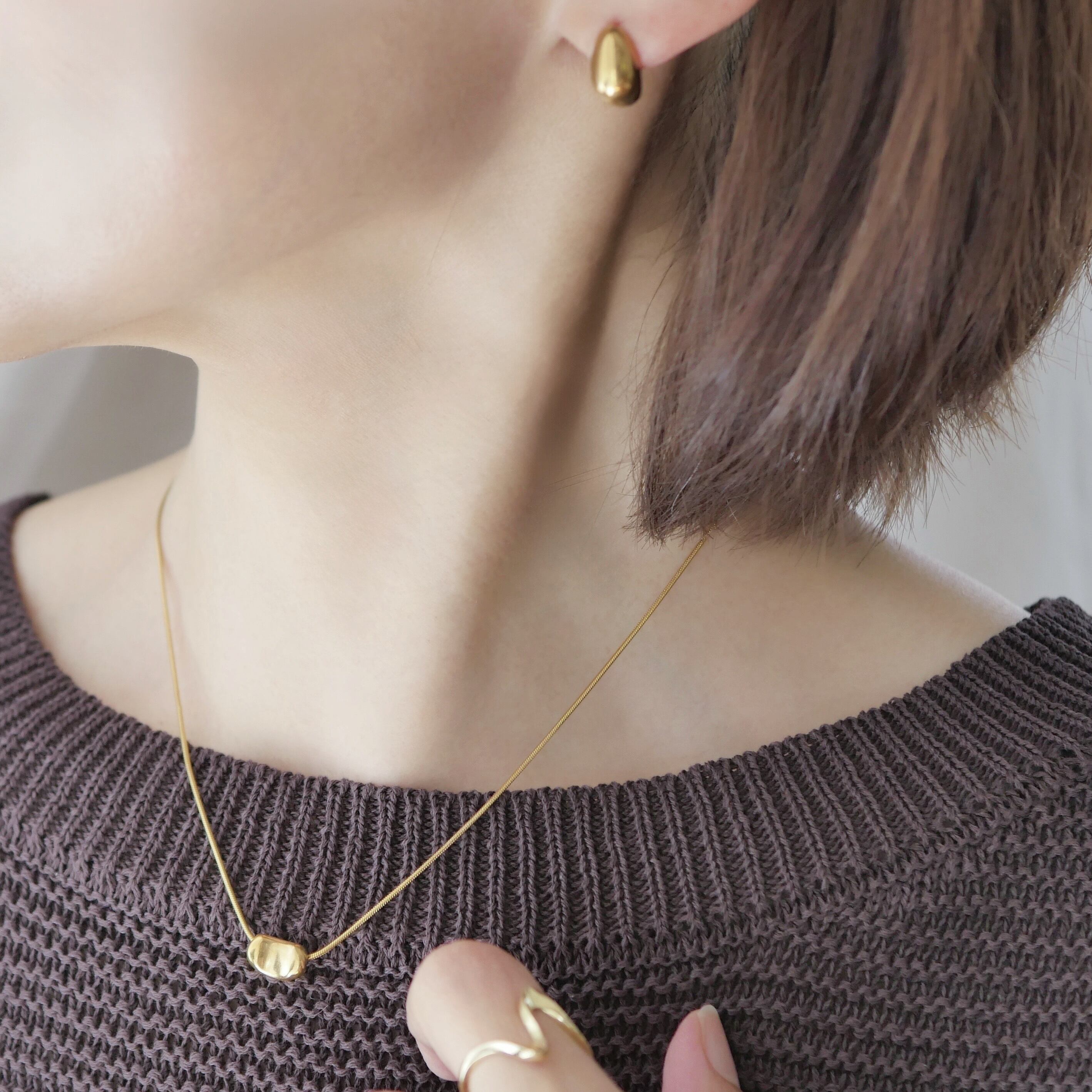 【暑さの残る秋のはじまりから使える】ニュアンスビーンネックレス ゴールド/シルバー スネークチェーン 秋ネックレス
