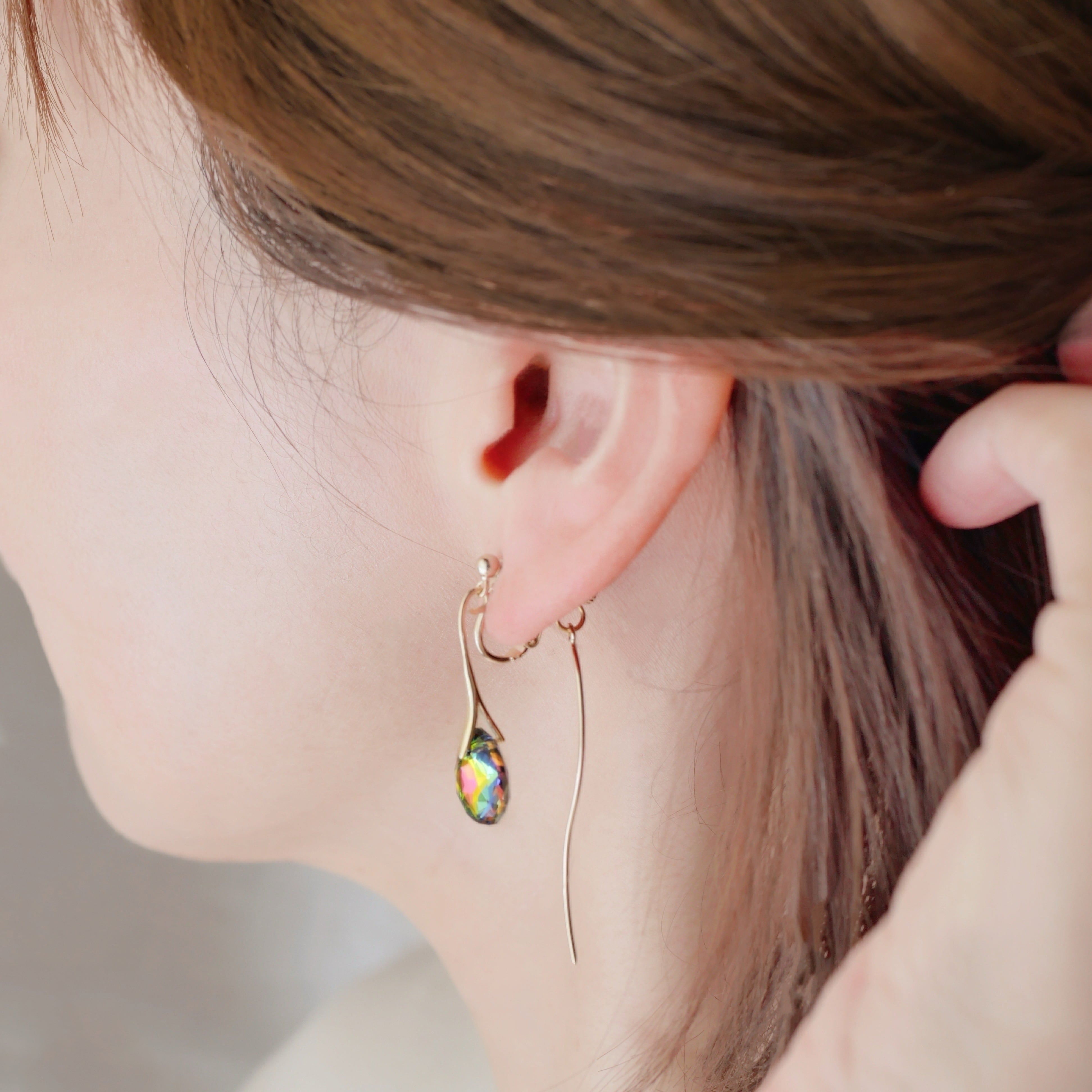 小さな一粒の中に万華鏡のような色彩を閉じ込めた、特別なピアス。