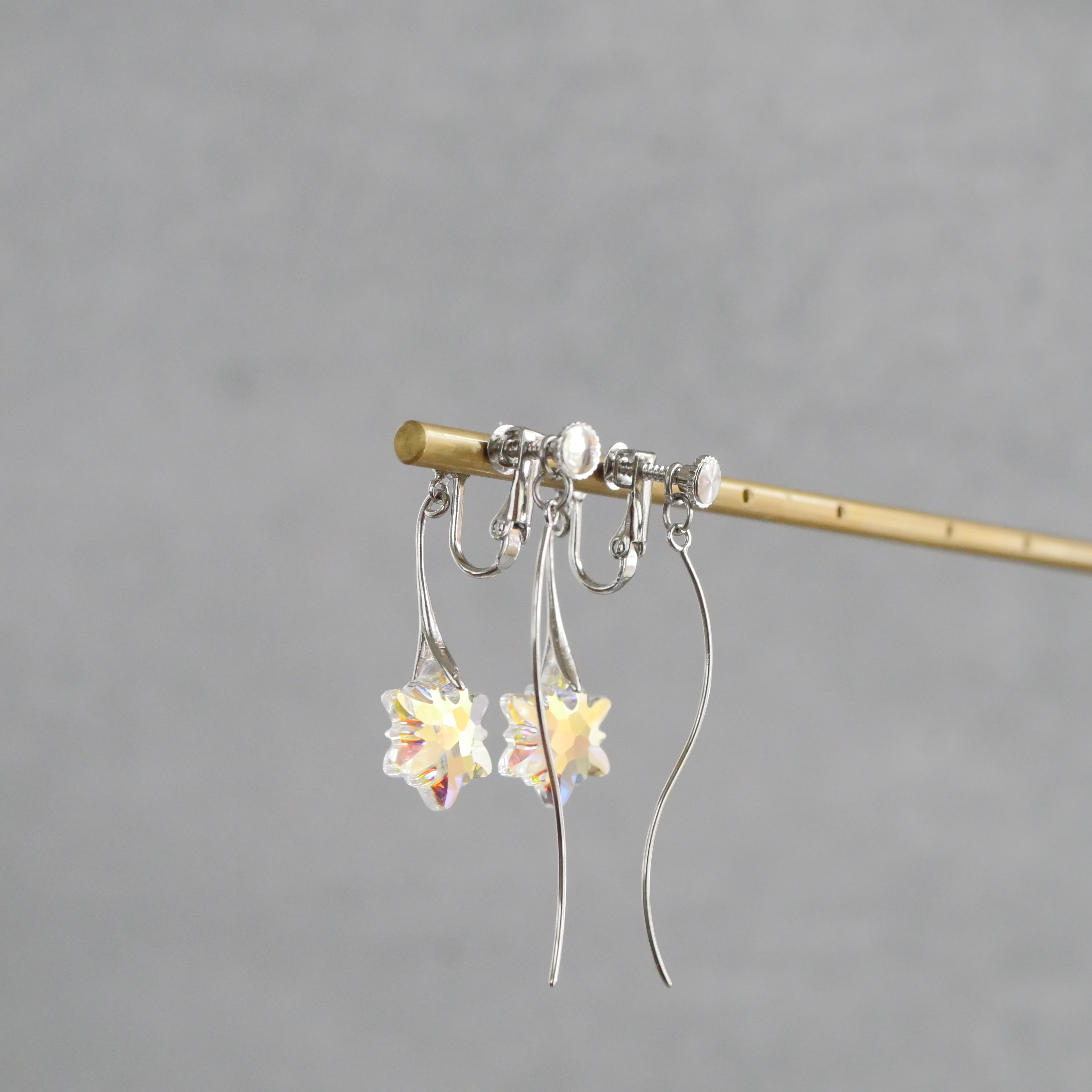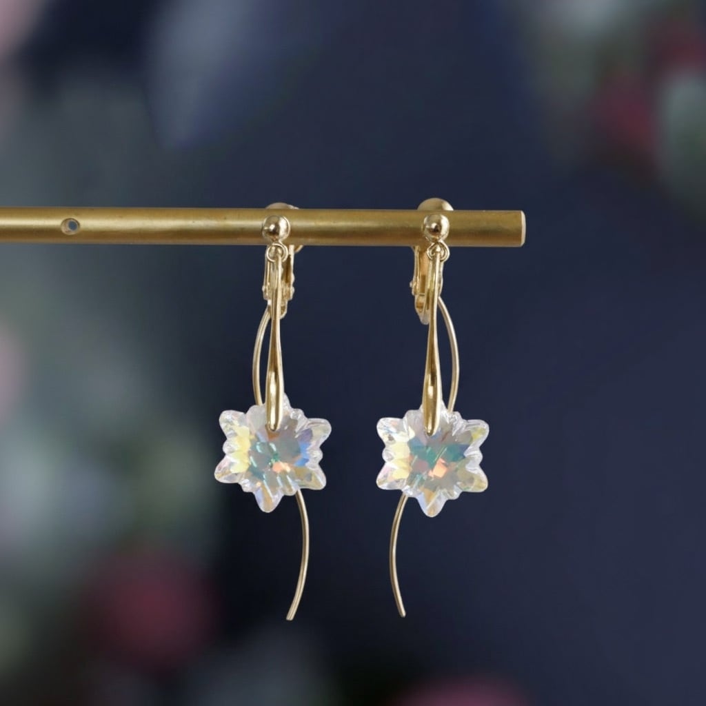 雪の結晶イヤリング クリスタルイヤリング 冬イヤリング ホワイトイヤリング 透明イヤリング スノーフレーク オーストリア産クリスタル 高品質ガラス 冬アクセサリー 大人上品アクセサリー クリスマスギフト プレゼント 誕生日 ホリデーシーズン