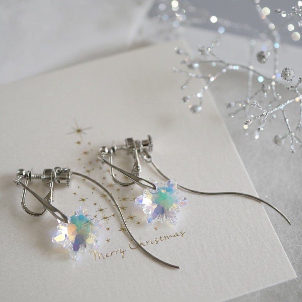 澄んだ空気の中で、耳元にきらめく雪の結晶イヤリング。
