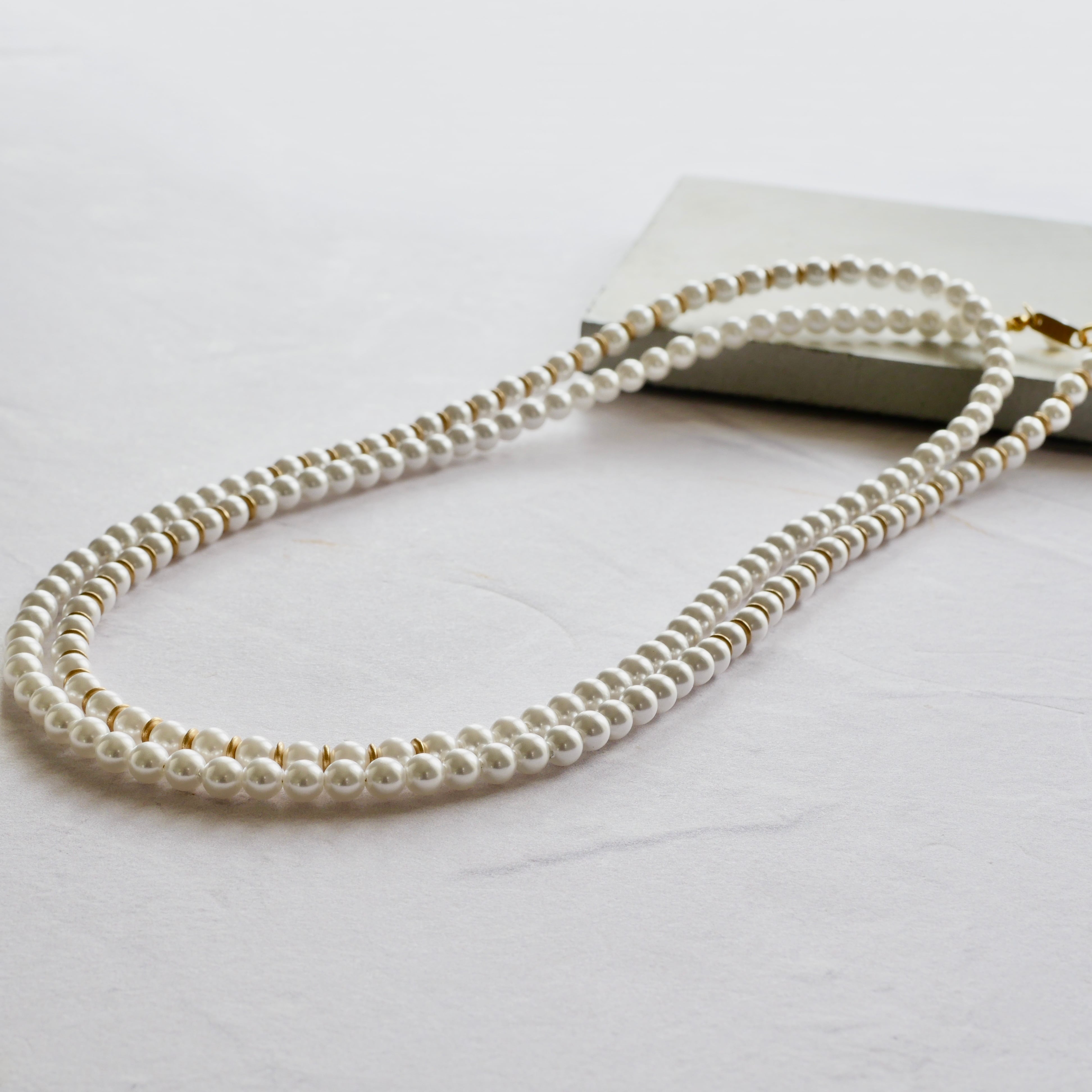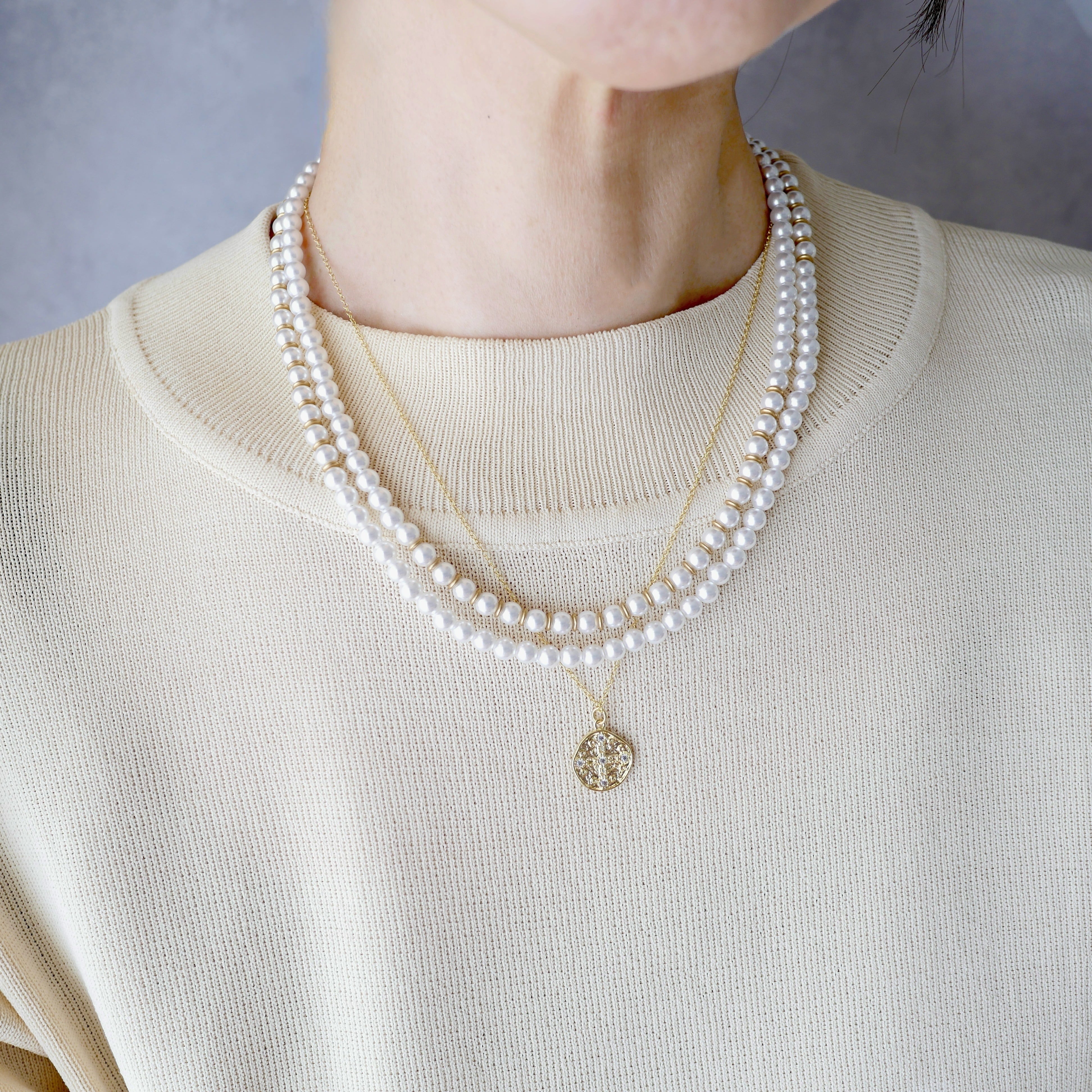 ・2連にして短めに合わせれば、首元に華やぎが生まれドレスアップにもおすすめ。