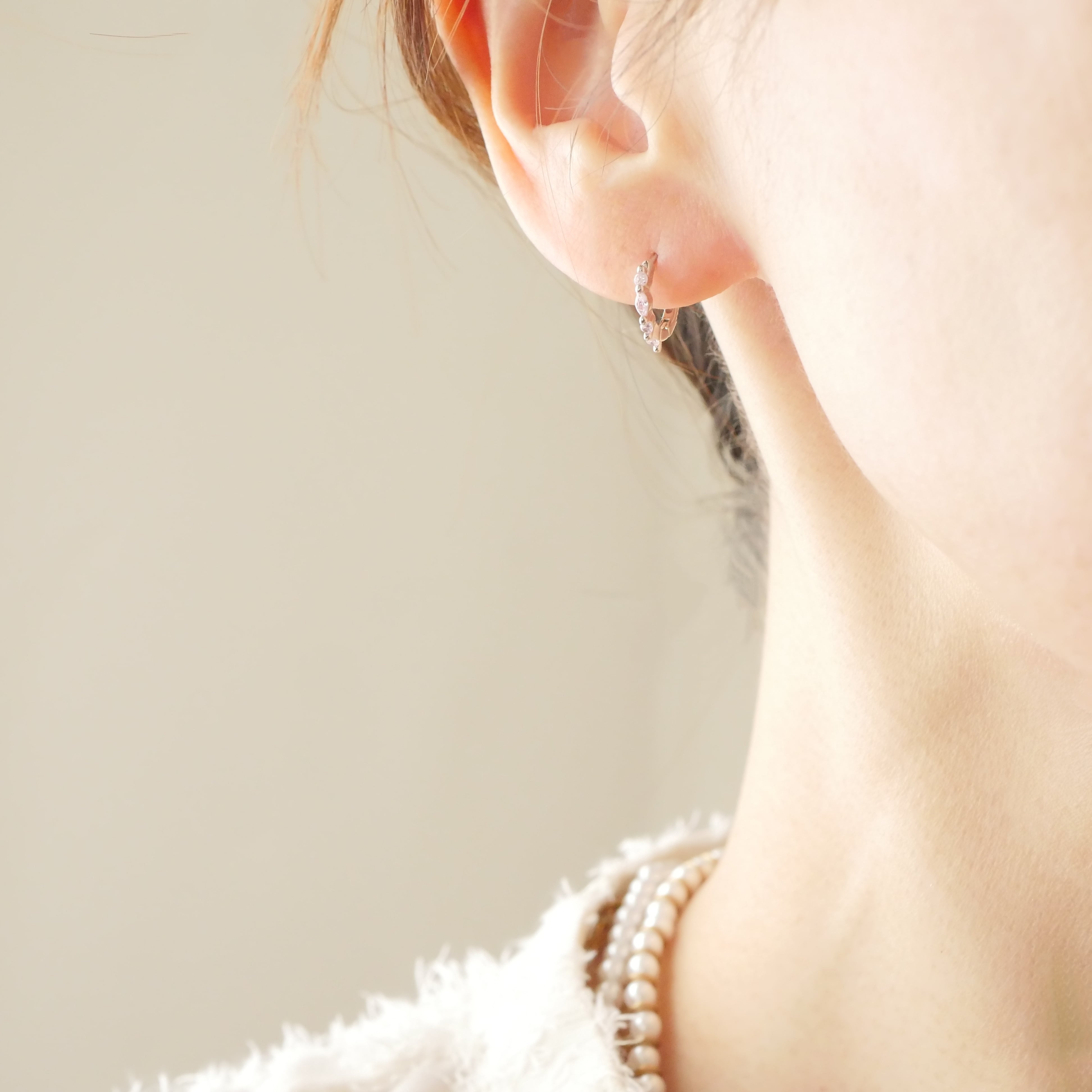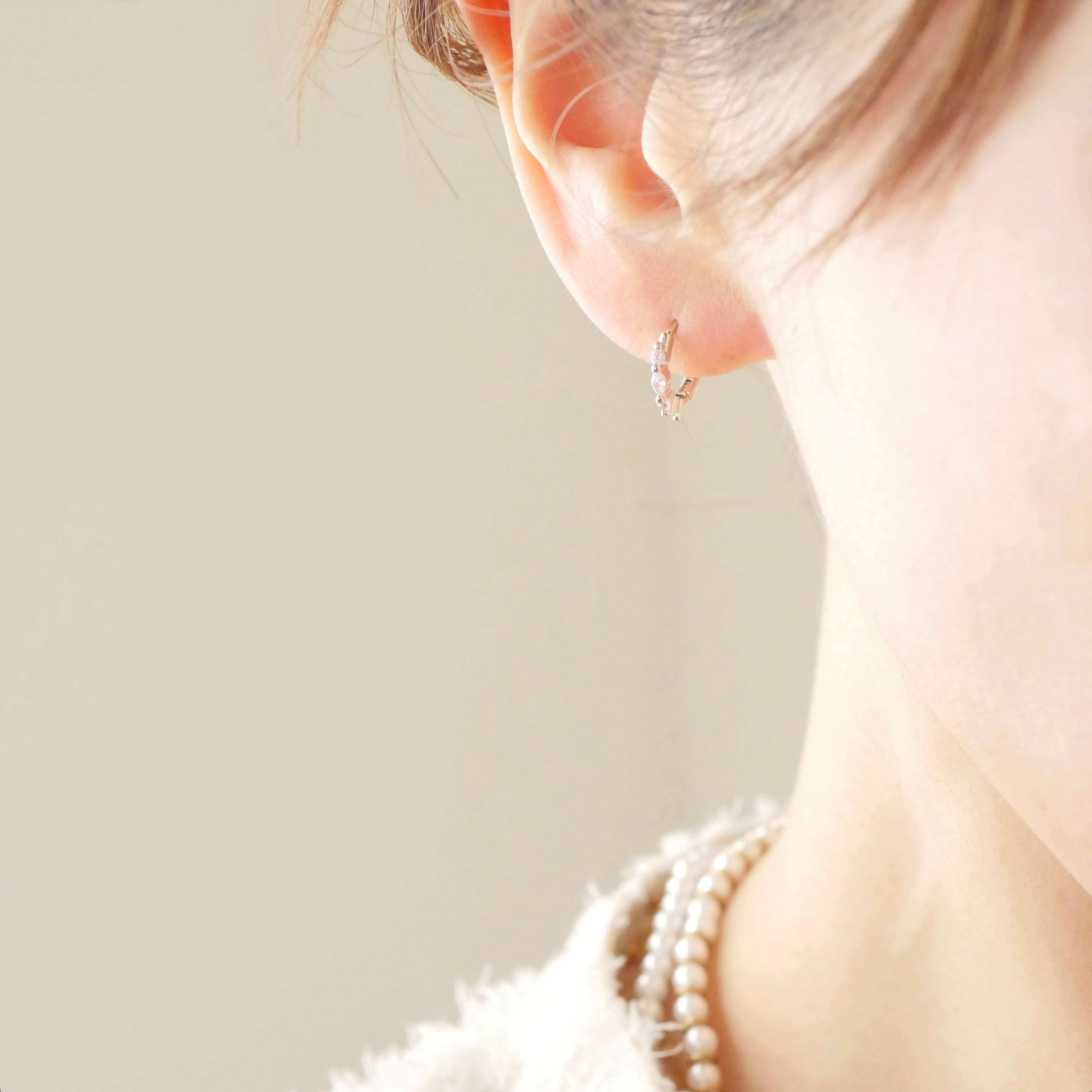 フープ部分は、耳たぶにすっと沿うコンパクトなサイズ感。