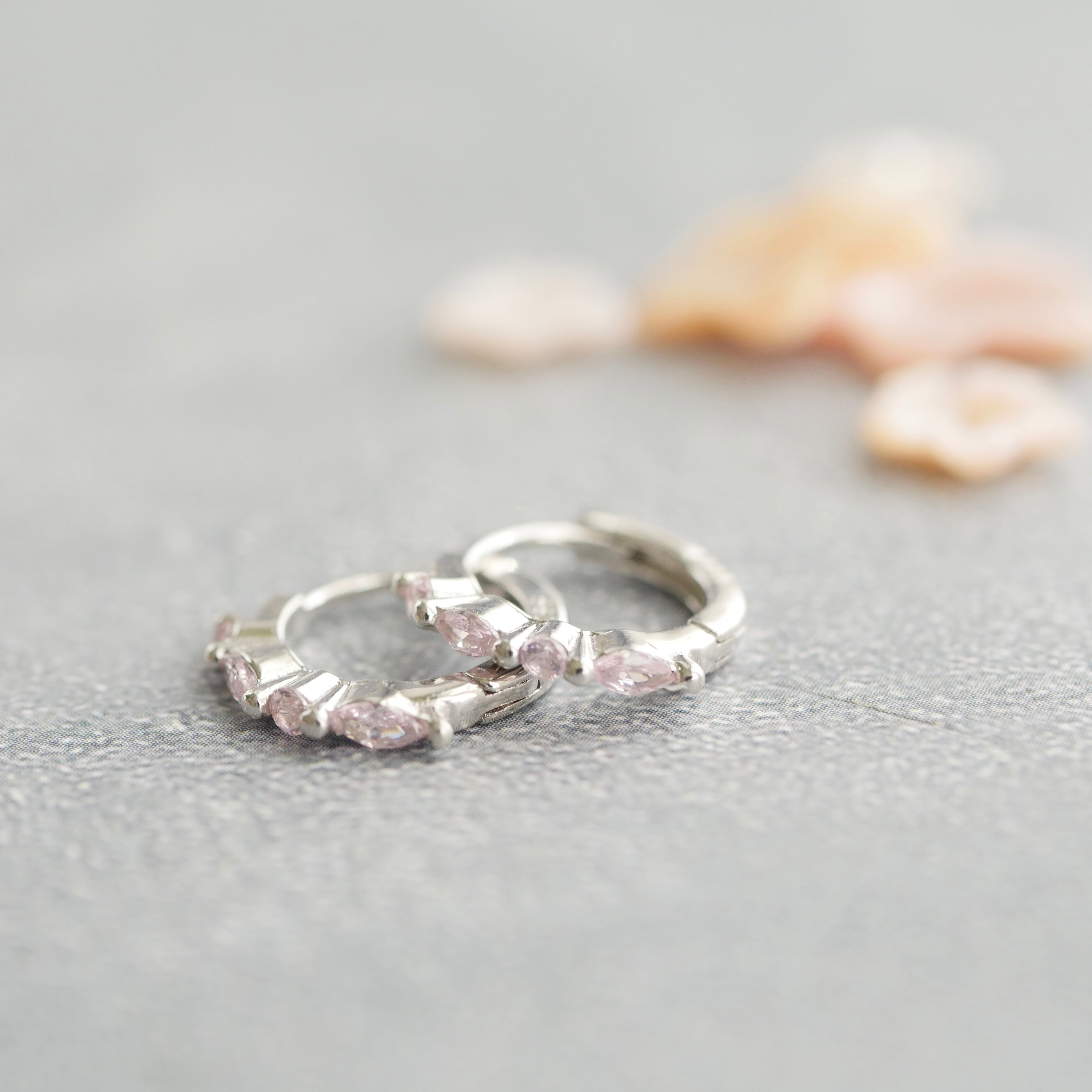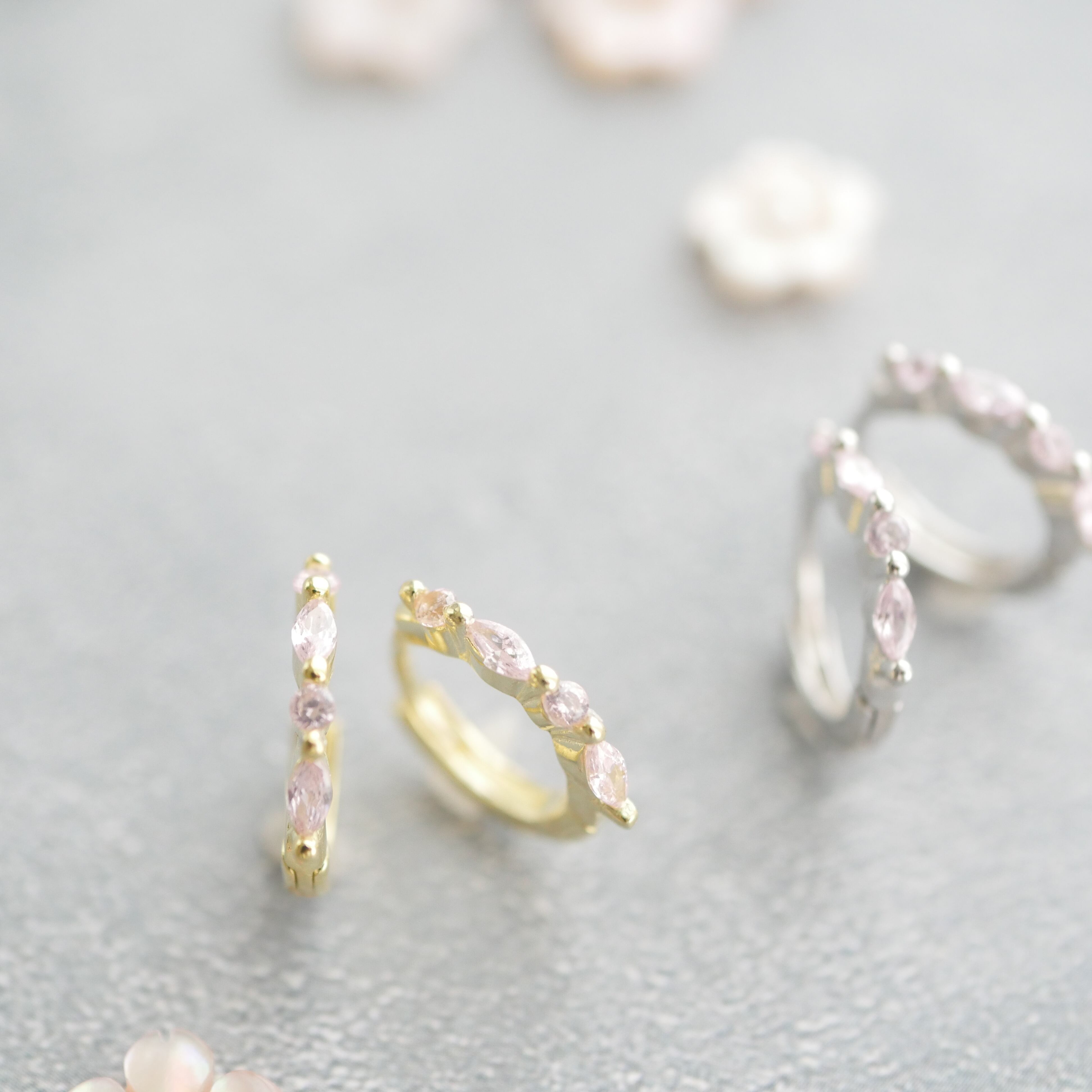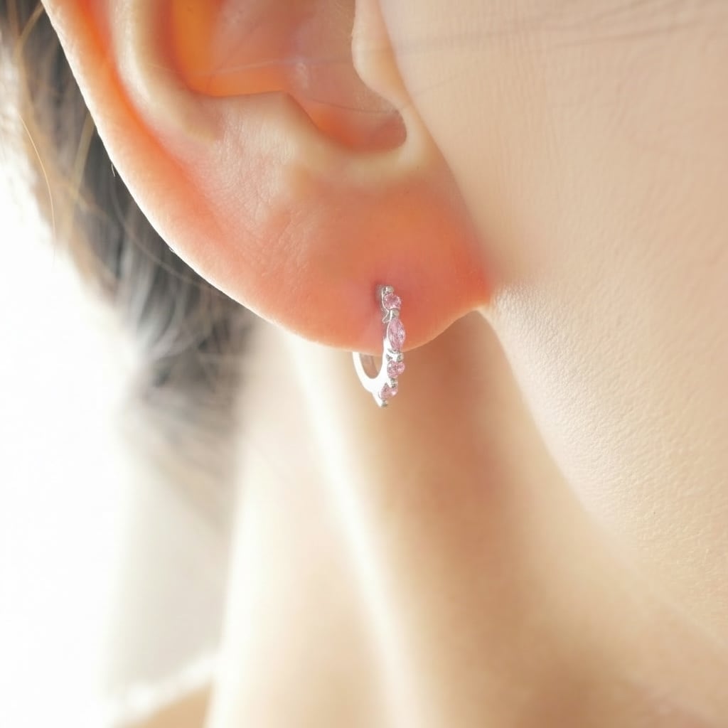 【数量限定】桜ピンク ワンタッチフープピアス/イヤリング(シルバー)
