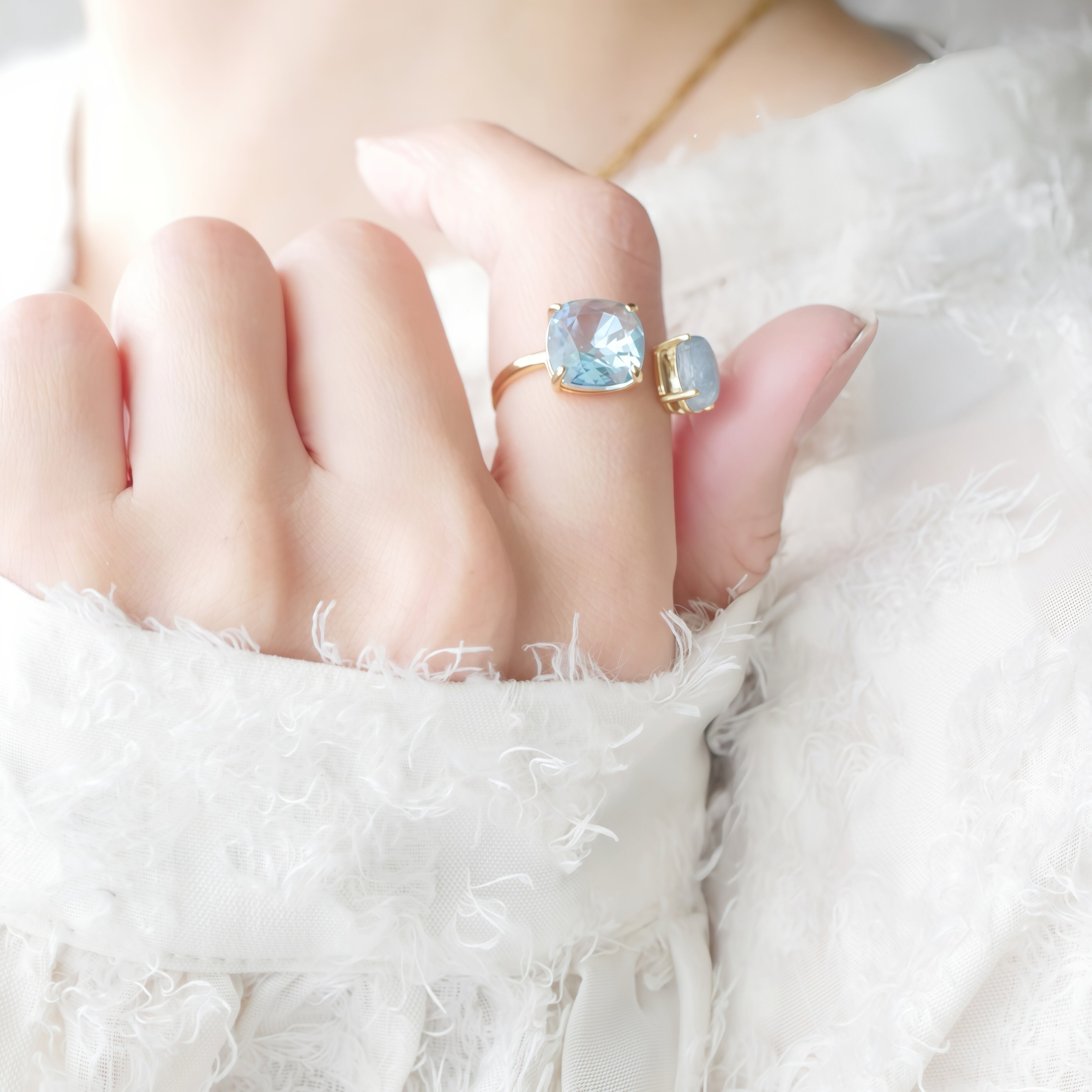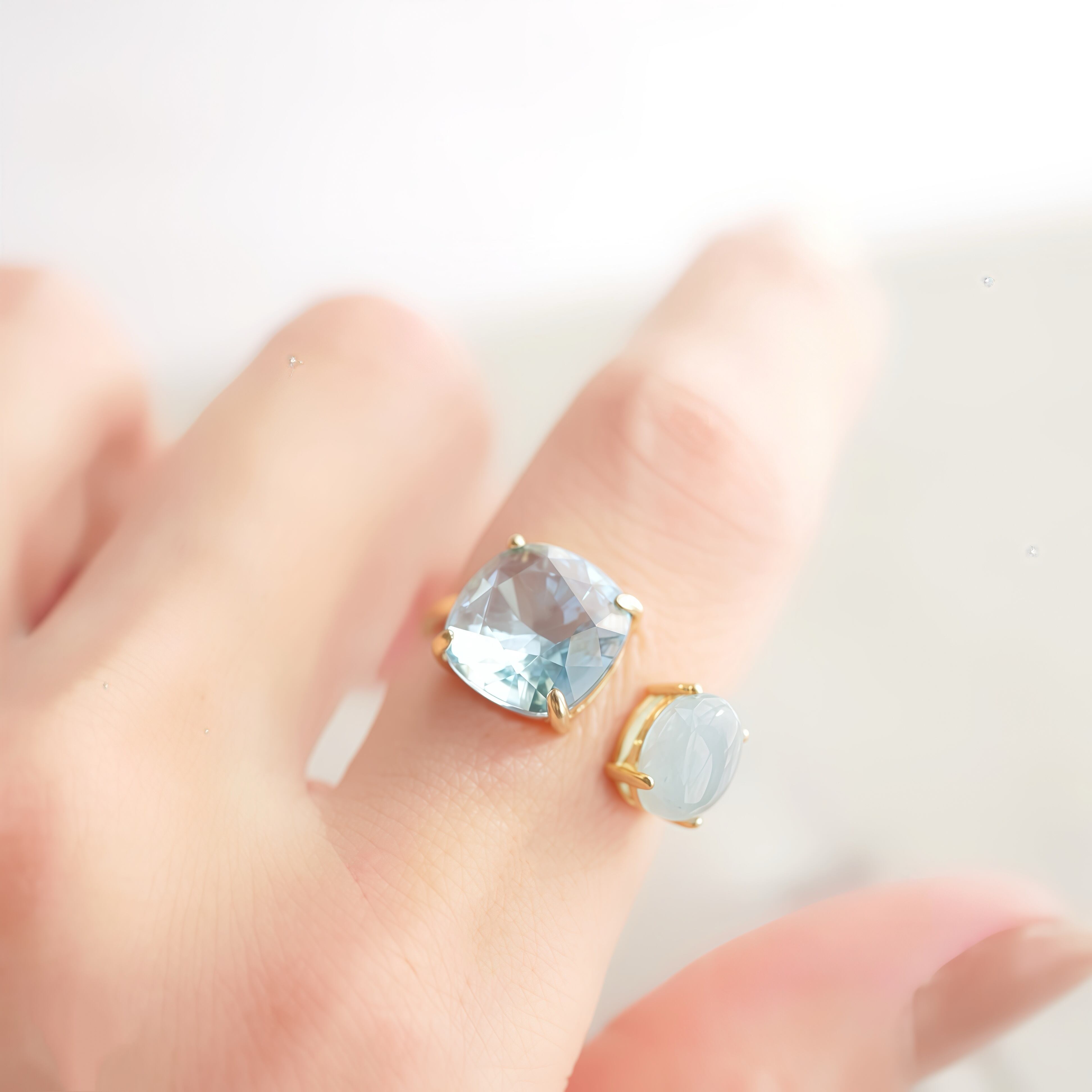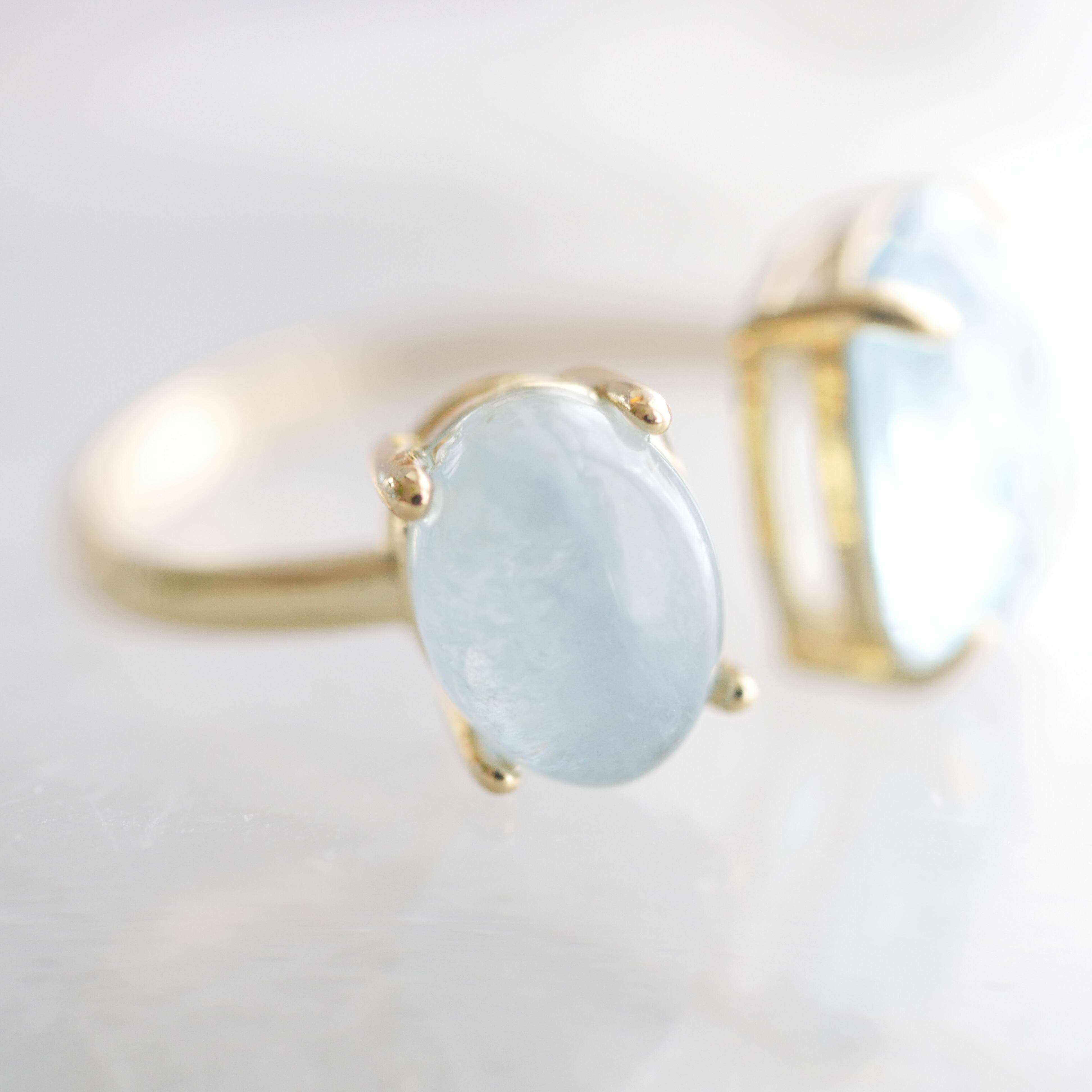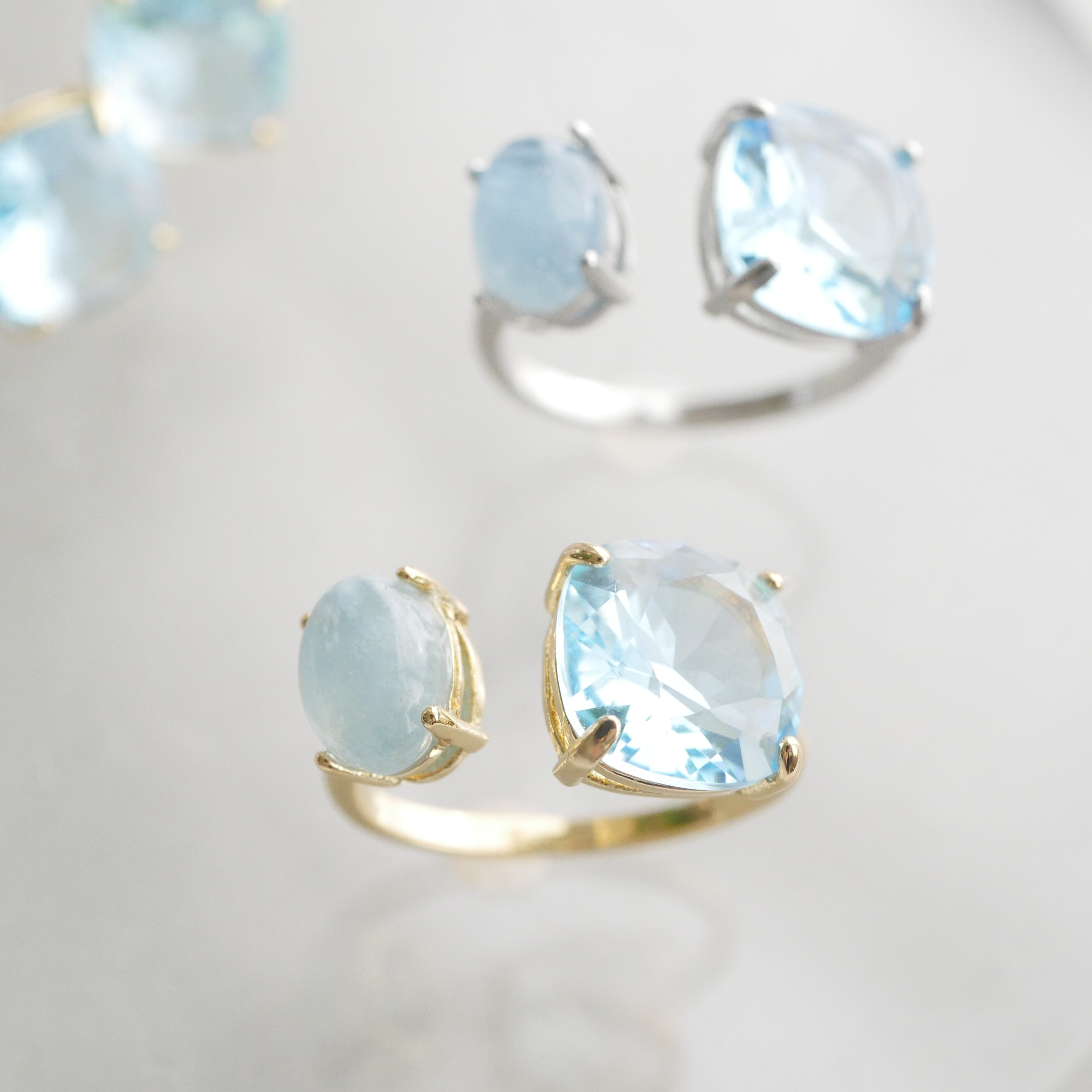 片側には、優しいミルキー感が魅力のアクアマリン。