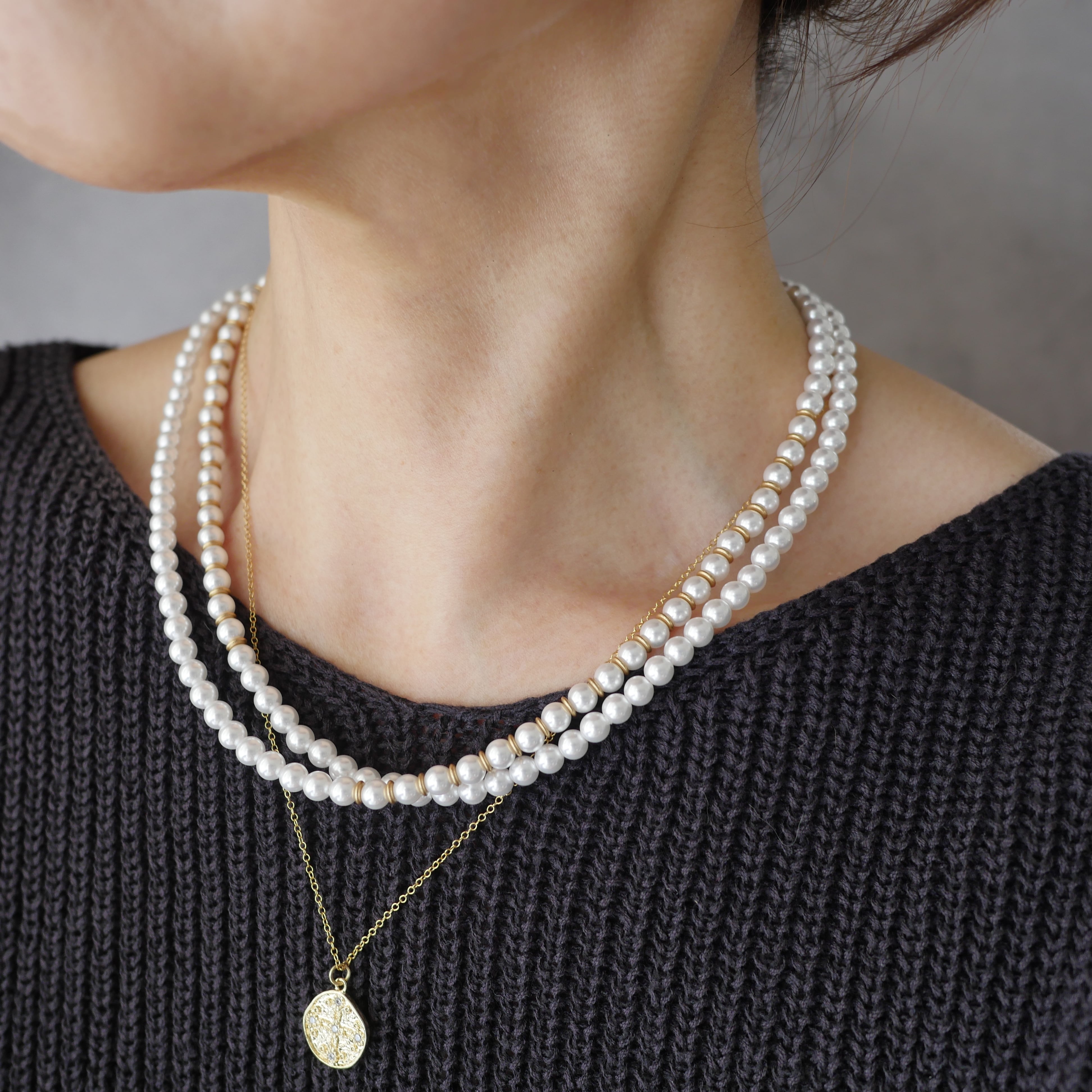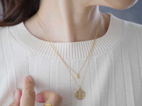 お手もちのネックレスと重ね付けしても素敵。