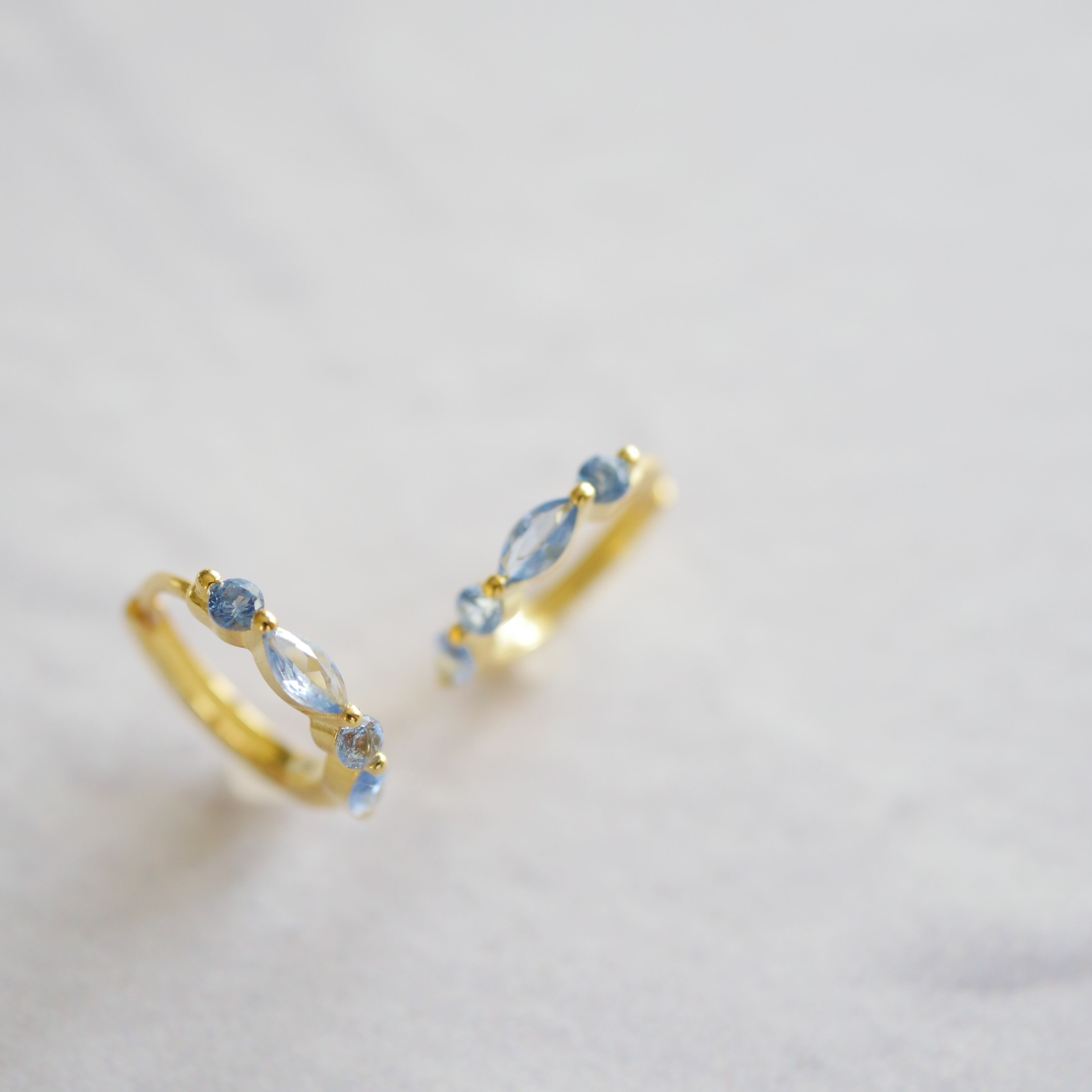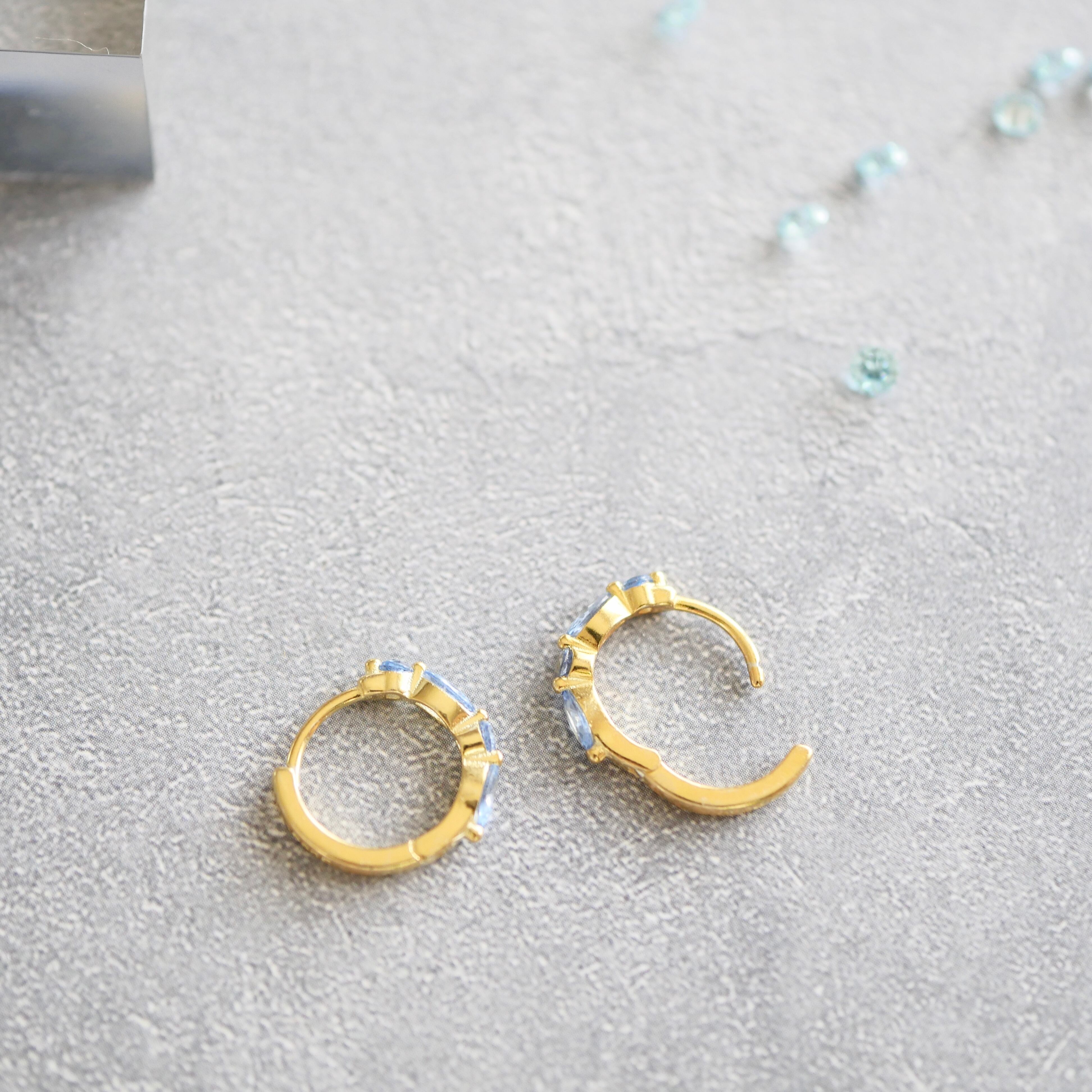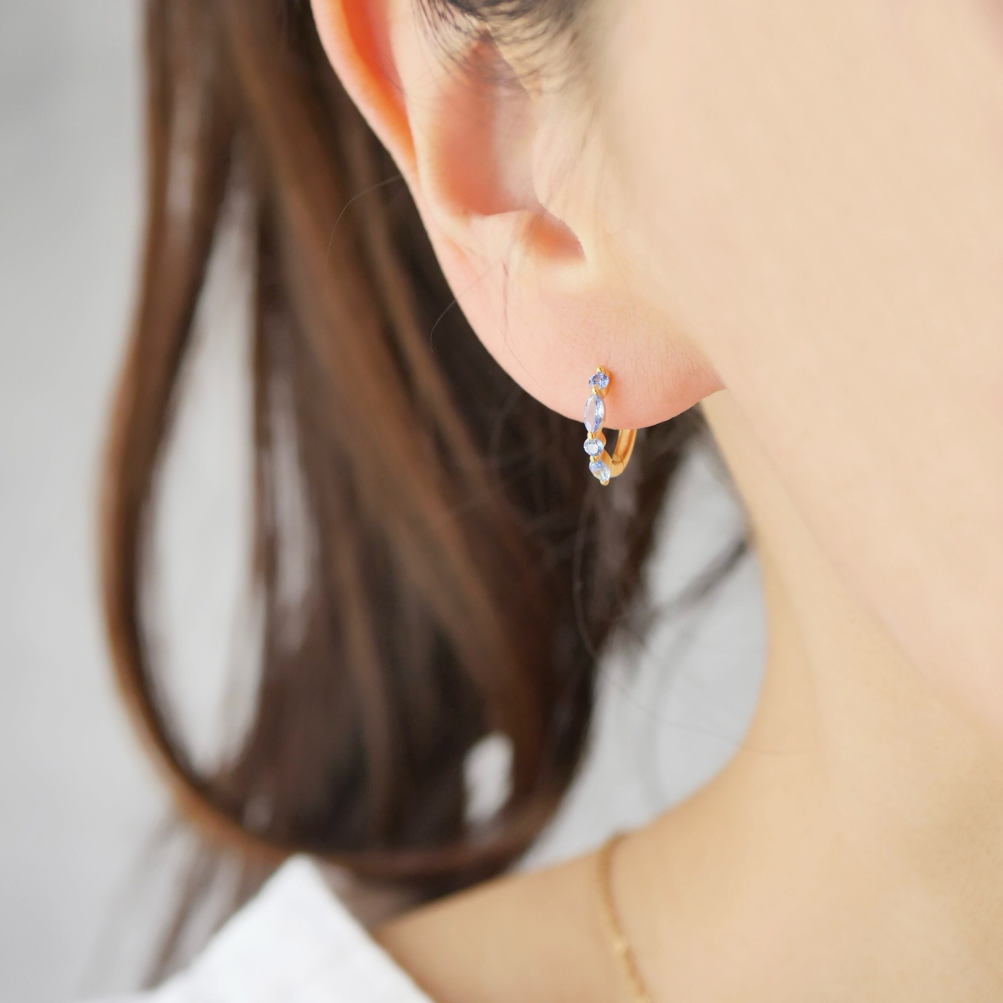 ちいさなアクアマリンカラージルコニアのフープピアス。