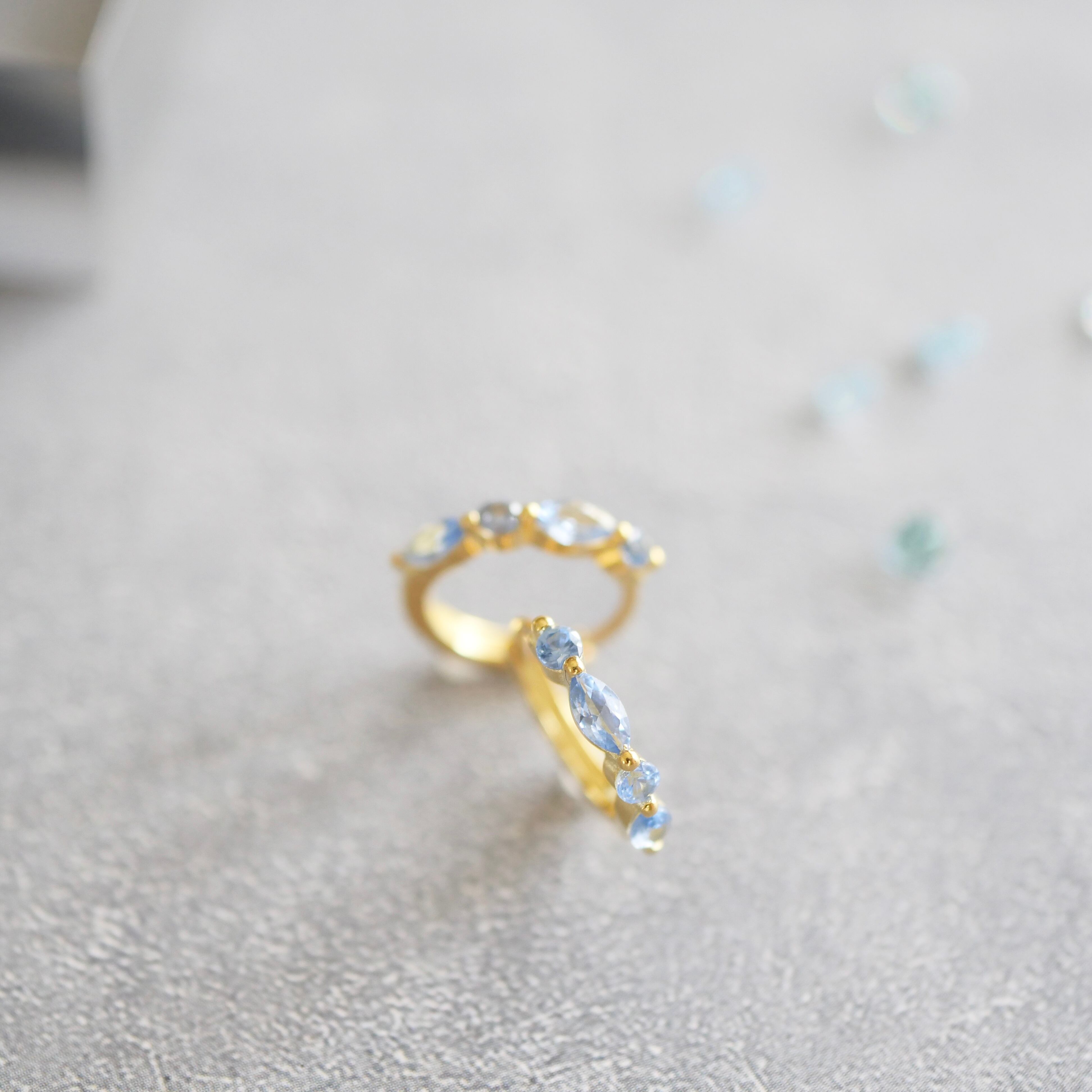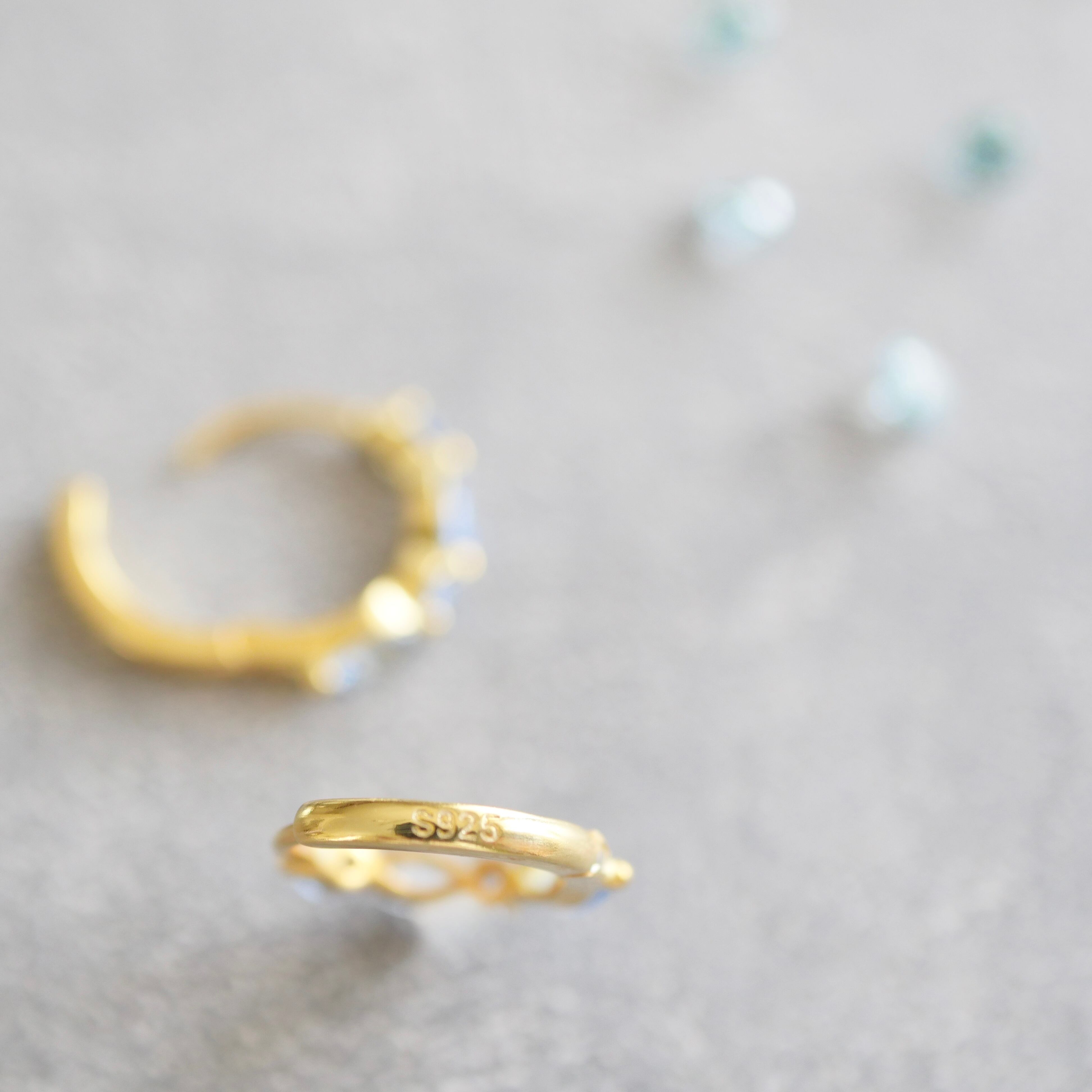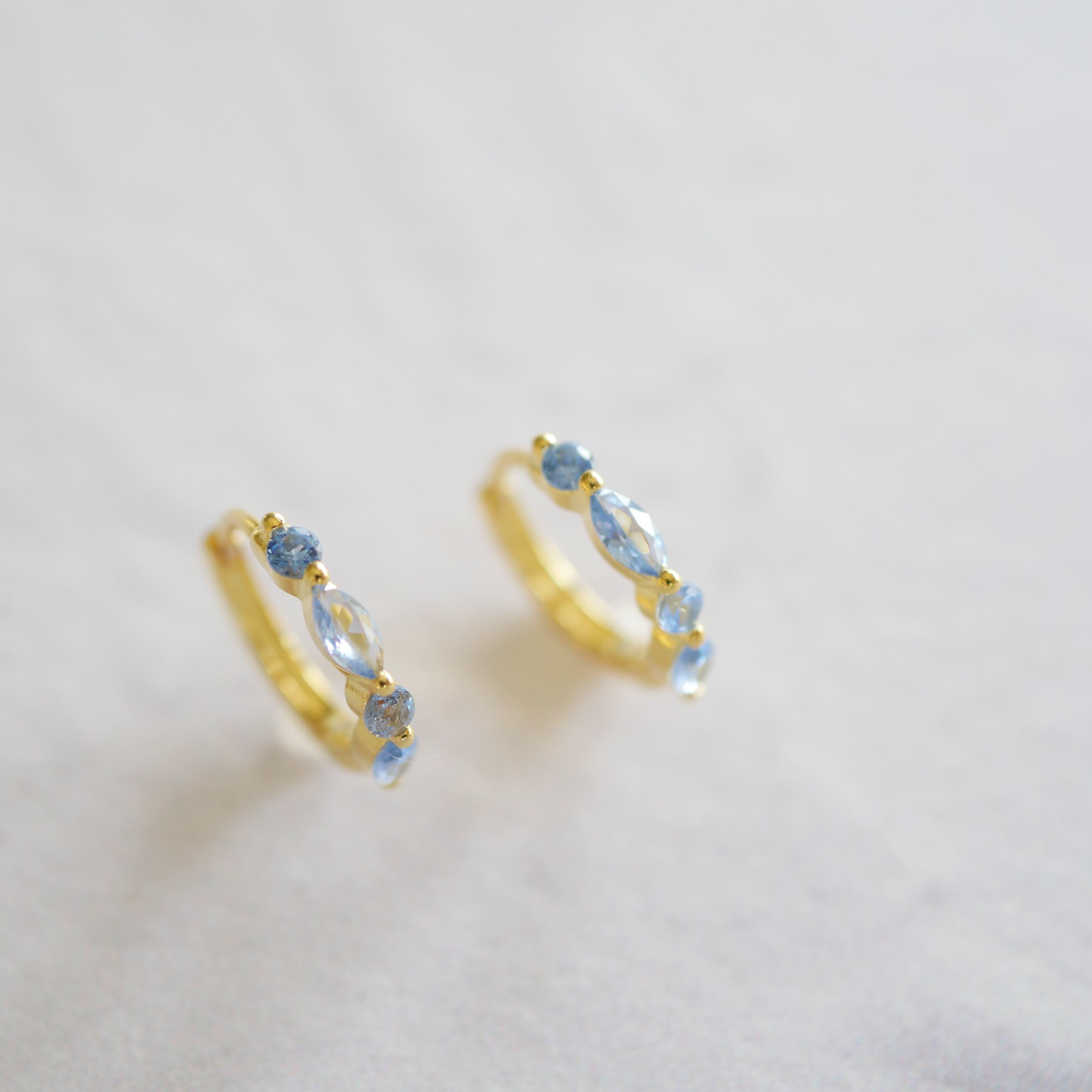 ちいさなアクアマリンカラージルコニアのフープピアス。